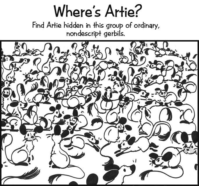 This was my favorite drawing in the coloring book. I re-used the Gerbils in the front left for a couple of my later fan art pieces. Apparently no one noticed what those two gerbils (back right), are doing.