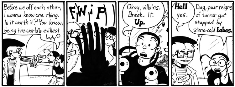 I remember being unhappy with the way the poses in the last panel turned out, but I guess they get the point across okay.