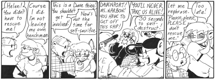 “I’m Helen Narbon and I’ve come for my henchman!” This has always been one of my favorite strips. Maybe because I’ve always wanted to be rescued by a deranged but beautiful woman. With a gerbil inseminator. GO HELEN!
