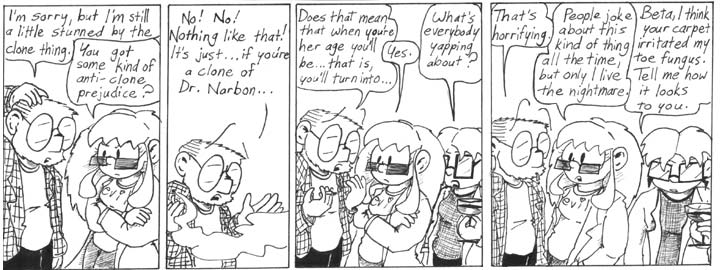 For filler-strip purposes, Mell has reverted to her outfit from my high-school strip, North of Space.