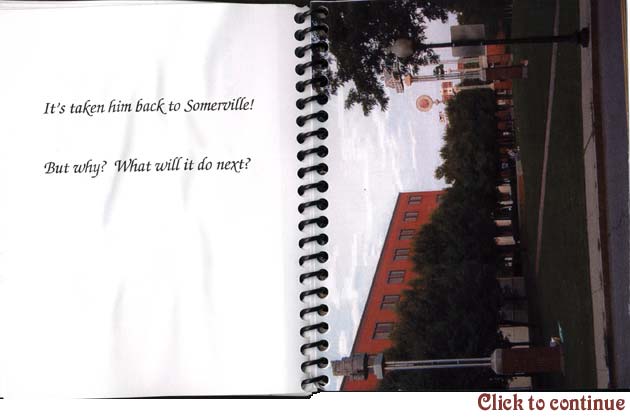 Right. So. This is an actual book, spiral-bound, with photos pasted into it. Dave Barker did indeed give it to me at Non-Con, the Vassar sci-fi convention, where I got to see a bunch of my Vassar friends (some of whom, to my immense dismay, I haven’t seen since). I was thrilled beyond words. I probably made weird, strained squealing noises. I don’t have a lot of personal dignity in situations like this.