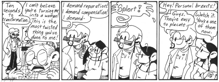 I have to confess I like that the sound effect for spontaneous gender reassignment is “Splort!” It just sounds so classy.