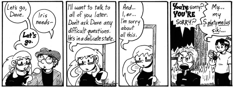 I like that Caliban gets a little character moment here, but really, this strip is mostly good for the exchange between Helen and Dave in the first panel. Sometimes the punchline ends up in the first panel, and there’s nothing you can do about it.