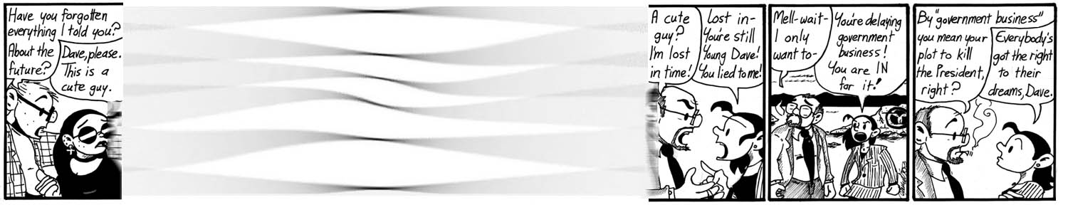 My favorite bit about this strip is how Dave seems surprised that Majel doesn’t believe about the time travel.