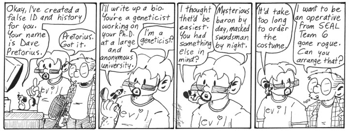 Gosh, I still love this strip. It’s such a ridiculous conversation. Also, the identities Dave and Helen come up with for themselves are actually pretty good.