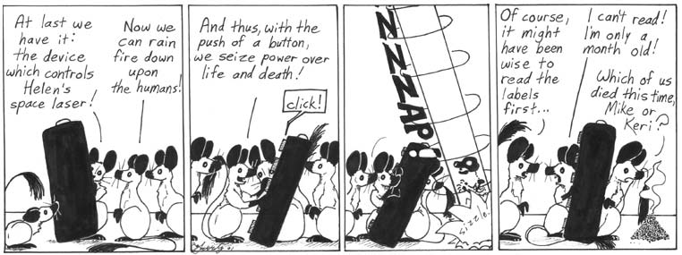Monday’s Comic: And here we are in the final stretch of the gerbils’ rebellion for control of the laboratory for reasons which are tenuous at best.