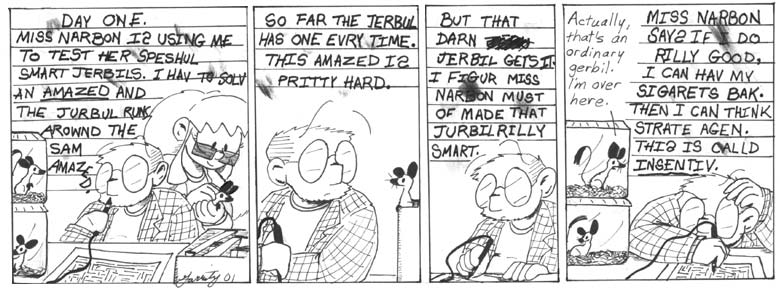 Consider it: all of the subsequent smart gerbils were created by Artie, that Vincent woman predates the beginning of the comic, the ur-gerbils are the offspring of those from The Job Interview, the slime gerbils never even existed, and the gerbil ray, though built with good intentions, never worked in the first place. Unless my memory of various throwaway gags has betrayed me, Helen seems to be silently shedding one of her defining motifs.