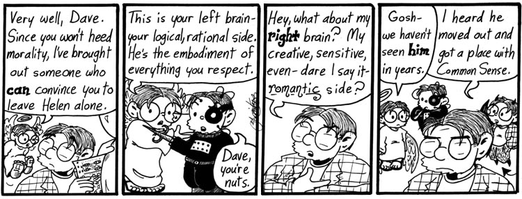 Dave’s rational side is a little Borg. Holy geez that is adorable. Common Sense appeared in some of the early strips, but at this point he hasn’t appeared in a long time.
