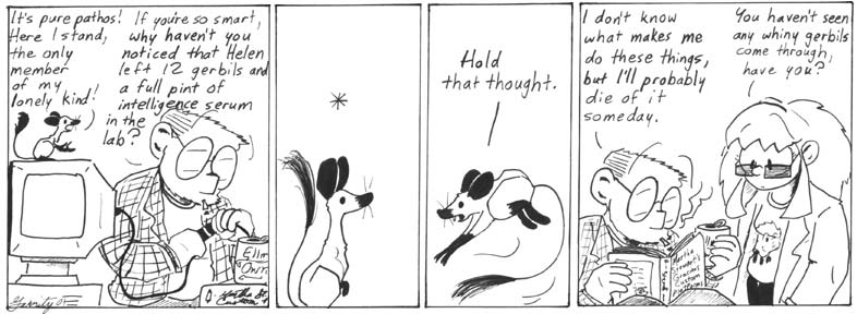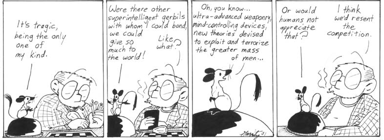 Artie’s size changes constantly. He’s way too big in most of these strips. Of course, it’s hard to keep a gerbil visible.