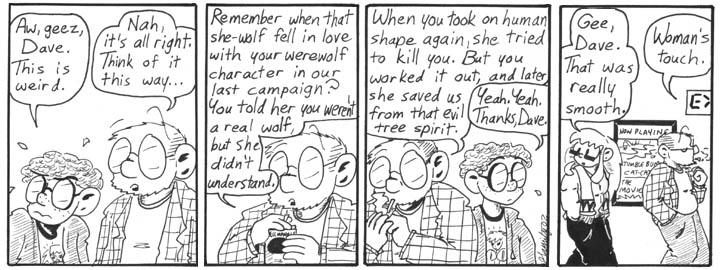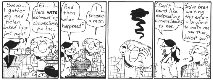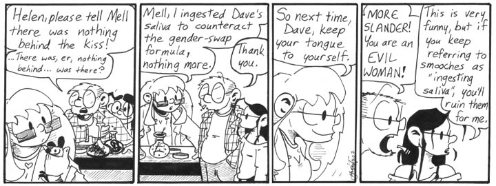 Aww. Just look at that sheepish grin in panel 4. How often is Helen ever in a servile pose to Dave?