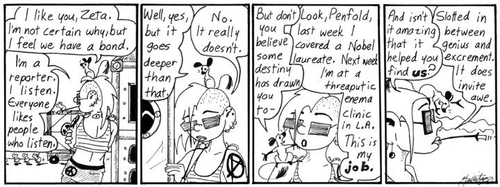 I wasn’t especially crazy about Zeta’s origin, actually; plot twists involving characters being secretly related to other characters don’t interest me as a general rule. I think I ended up doing an okay job with it, and I very much like the last daily strip in which Zeta appears, but I was ambivalent about it at the time I was doing these strips.