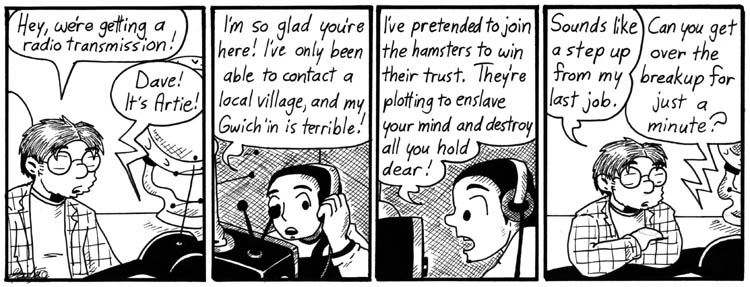 This is just a little plot-connecting strip, but the hamsters’ crude paper-plate face always makes me smile.