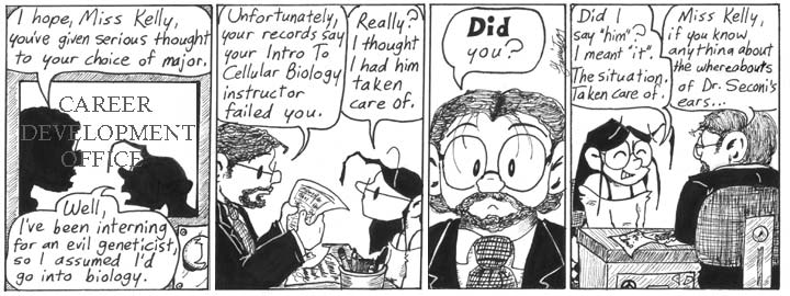 I spent a lot of senior year in the campus career development office, which did not begin to prepare me for my eventual career as a freelance comic-book editor and webcartoonist. Honestly, how was I supposed to see that coming?