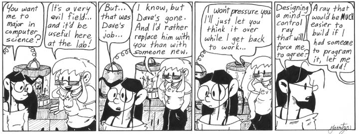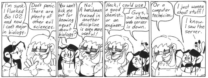 Thursday’s Comic: Ah, mad scientists. If they want something to exist, nothing can stop them from making it exist. Nothing short of basic technical aptitude, at least.