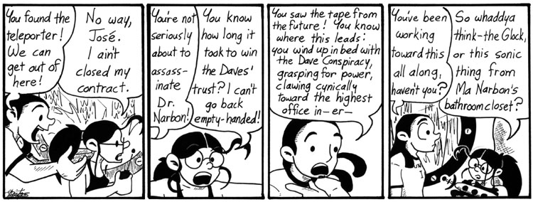 This was one of the last strips I wrote for this storyline. You can always tell a plot-advancing strip by the walls of dialogue.