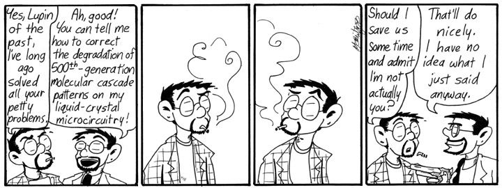 Anyhow, enough about that Other strip. Let’s talk about Narbonic! I’ve always been fond of the fact that (spoiler) Madblood is sort of playing Dave for the chump here, rather than the other way around. We mock him, but ol’ Lupin is capable of the odd fit of extreme caginess.