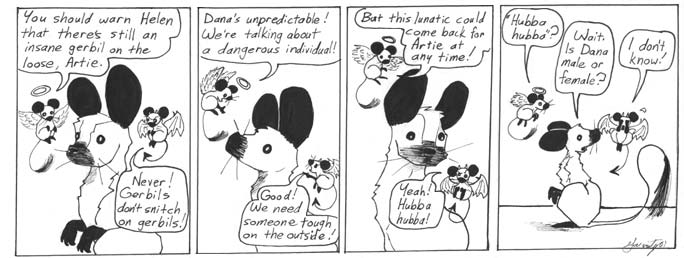 Silly Shaenon, Artie isn’t the comic relief funny animal character of the strip. That’s Mell. Her degeneration during “Island of the Ur-Gerbils” is pretty conclusive in illustrating that.