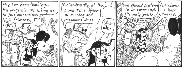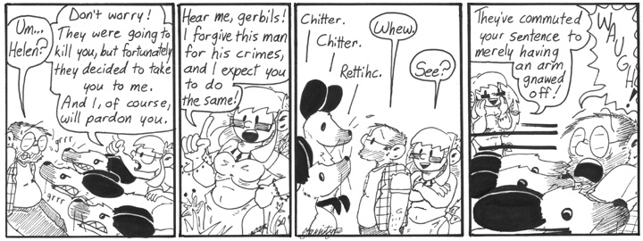 In today’s strip, Helen and the Ur-Gerbils bring a whole new meaning to the phrase, “disarmingly cute”.