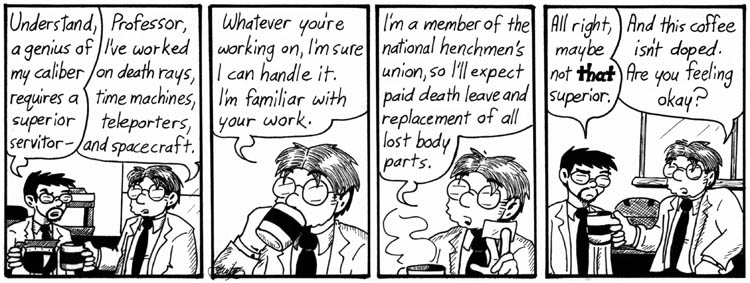 This strip is absolutely brilliant. The joke in panel 4 ends up being a perfectly straight line.