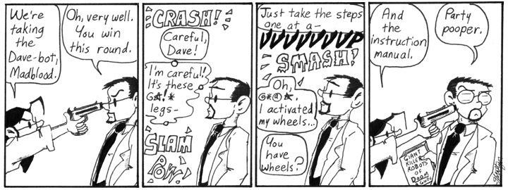 I like how Madblood corrects Helen. Dave’s not just a robot, he’s A GIANT KILLER ROBOT OF DOOOM!