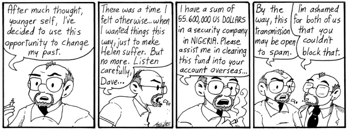 The most important advice Future!Holographic!Dave gives is actually in the third panel, but Dave doesn’t take it.