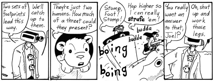 I also love Foot. I’m kind of sorry I didn’t have more room for him in Narbonic, but maybe Foot is better in small doses. I like to think he and Zeta had many adventures on their own, stomping things.