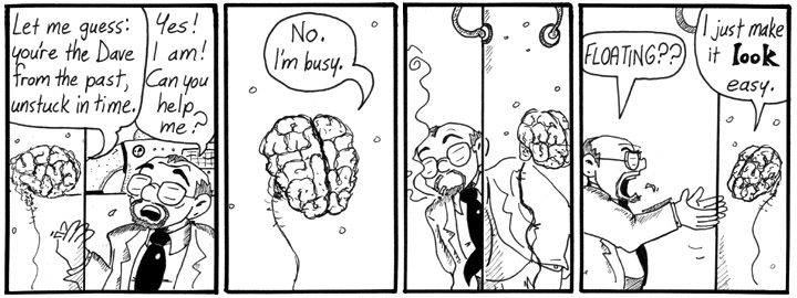 By this point, many readers had already guessed that Future!Helen would turn out to be a brain in a tank. You know why? Because brains in tanks are AWESOME. This is one of the pulp sci-fi tropes I absolutely had to include in Narbonic at some point.