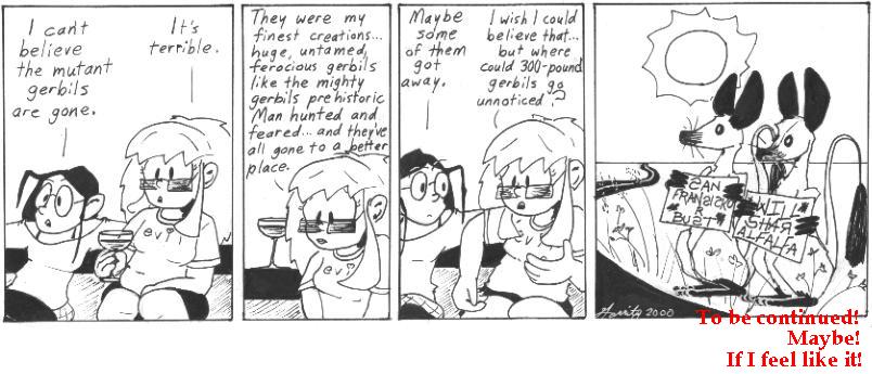 Huh, now I kinda want to make a comic with giant gerbils too. I wonder if it would be a better idea than the planet-hopping ex-post-apoc-gang with the 300 year old alien tag-along and no universal translator…