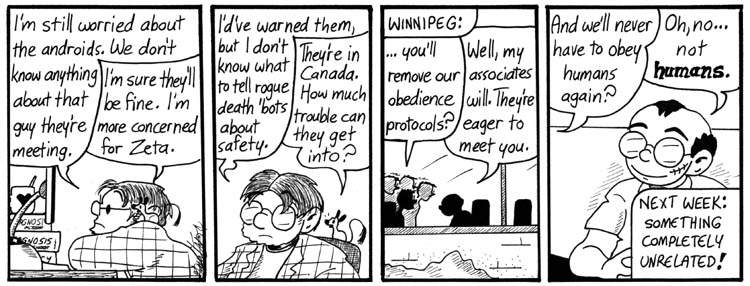 Next week: one of the bigger storylines. From here on out, everything ties into the main story arc. Also, characters are slightly more likely to get laid.