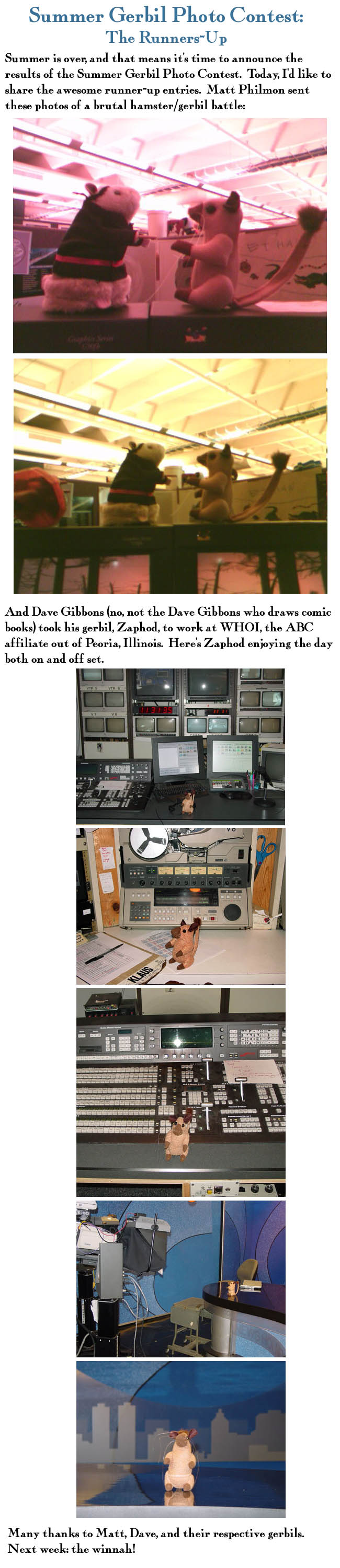 According to my online orders, there are now at least two Dave Gibbonses who read Narbonic, neither of whom is the Dave Gibbons who draws comics (whom I have met, and he’s a very sweet guy). Also, I’m pretty sure none of them are gibbons.
