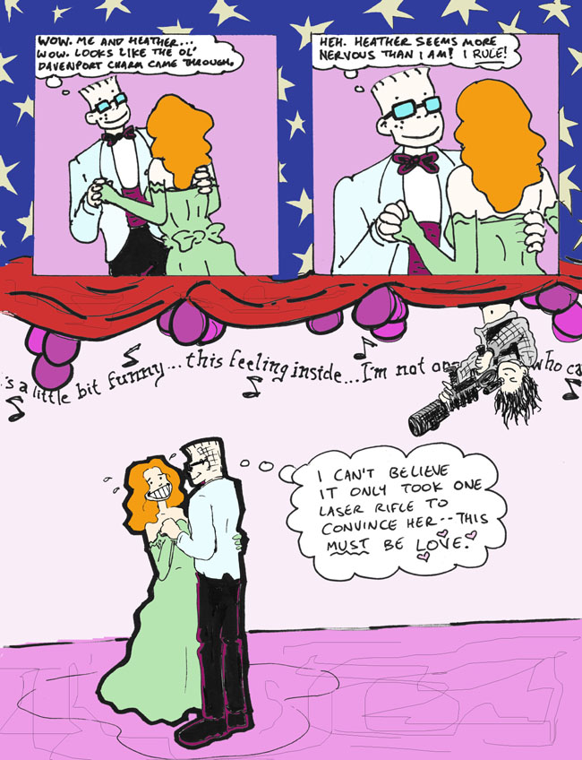 You can tell that Ultimate Narbonic takes place in an alternate universe because Helen and Mell are helping Dave get a date, as opposed to actively sabotaging any and all attempts he might make at a normal life.