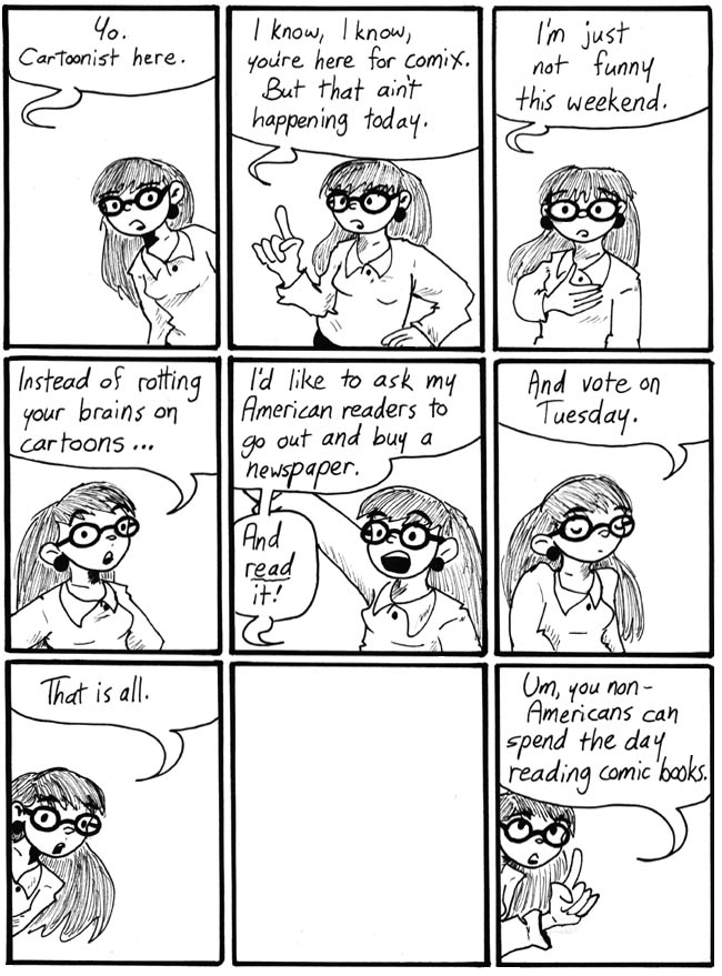 I don’t usually do overtly political comics, but maybe I should. Maybe I’d feel less useless. Sure, people would get angry, but people get angry anyway, that’s what the Internet is for, so what the hell.