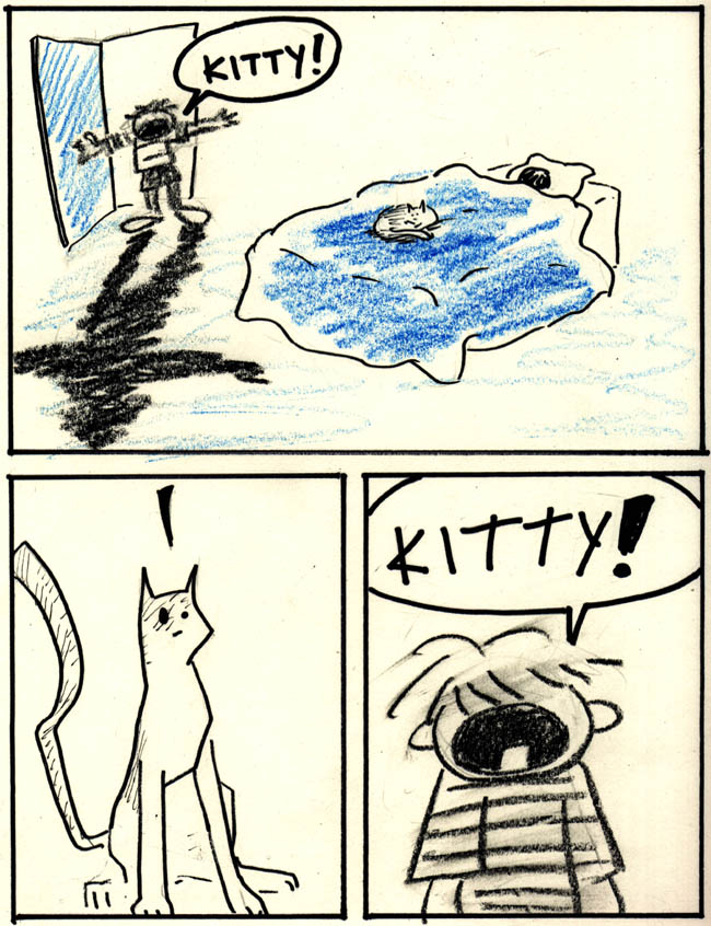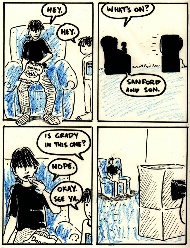 Andrew periodically talks about doing a comic loosely based on his childhood. This was drawn during a period when he had the idea of drawing his younger brother Chris as a crayon scribble. So, Chris, if you’re reading, this is what you looked like in Andrew’s head. After drawing this comic, though, I think he soured on the idea and went back to drawing Chris the same way as everyone else.