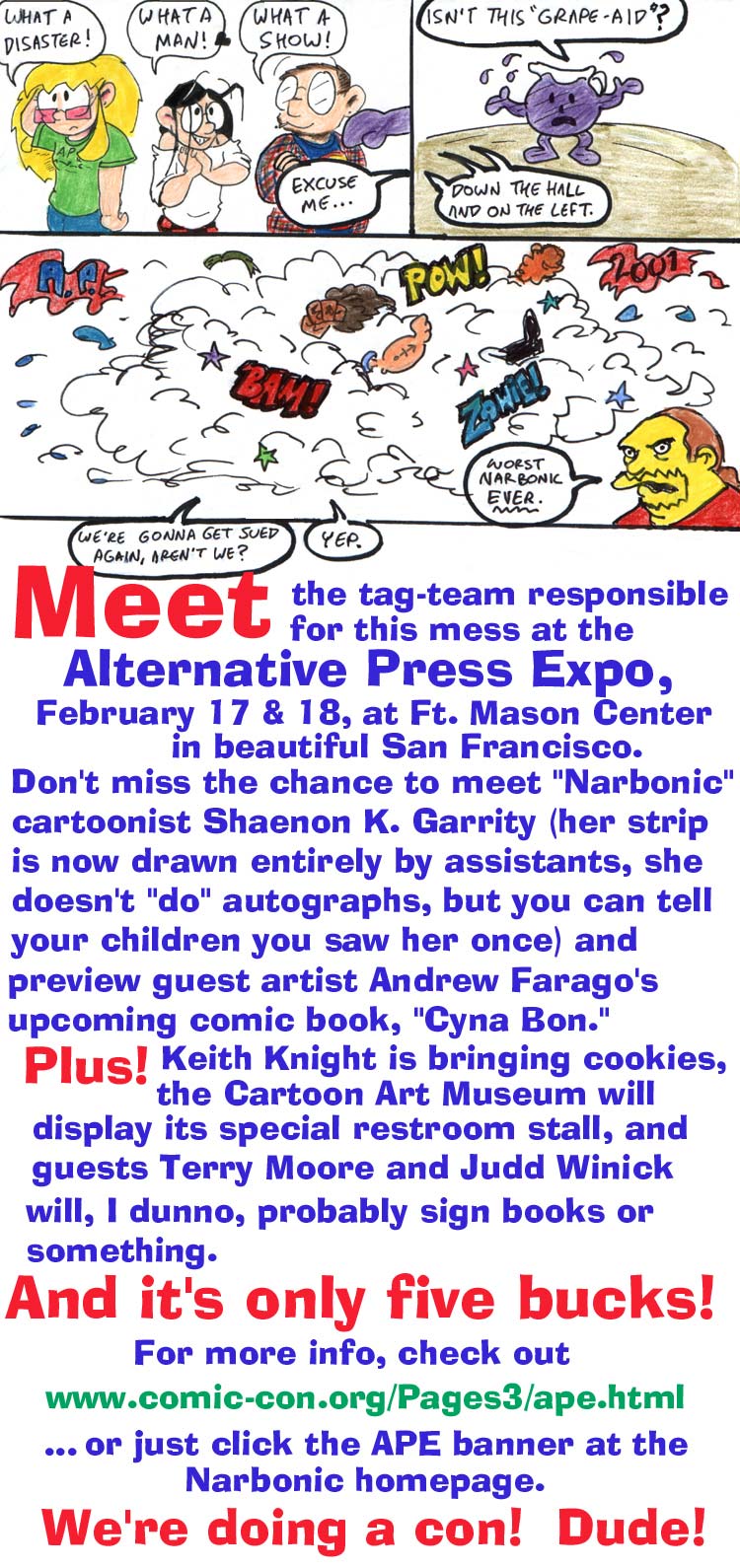 I could tell my children I saw Shaenon once… if I had any. The amazing thing is that it was a business trip, so most of my expenses were paid. Stuffing bags for two hours paid the rest of them.