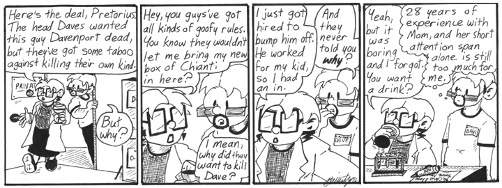 The best part of this strip is the file cabinet in the first panel with all the drawers labeled “D-D.”
