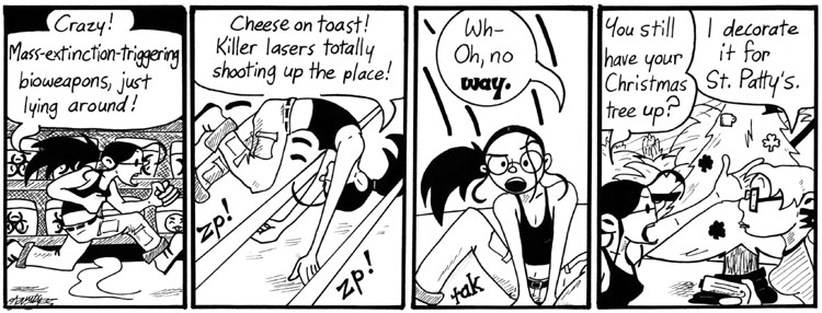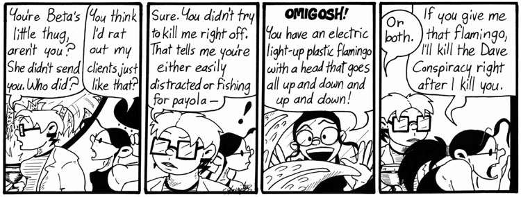 I’m really happy with the way this strip came out. That fisheye-lens effect in the second panel is easier than it looks; you just draw wrong.