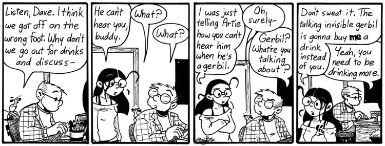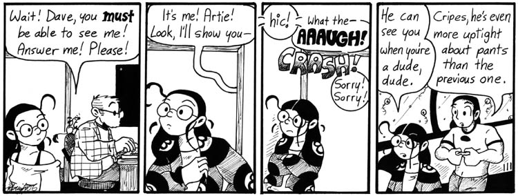 I worried about doing this strip because I wasn’t sure if people would remember who Bill was. (ANSWER: He’s Dave’s mundane brother.) But it had to be done.