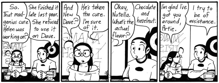 The impotence thing is meant as a joke, but it’s listed on TV Tropes as Helen’s actual reason for not using the cure on Real Dave. I need to be careful about what I say in my comic strips.
