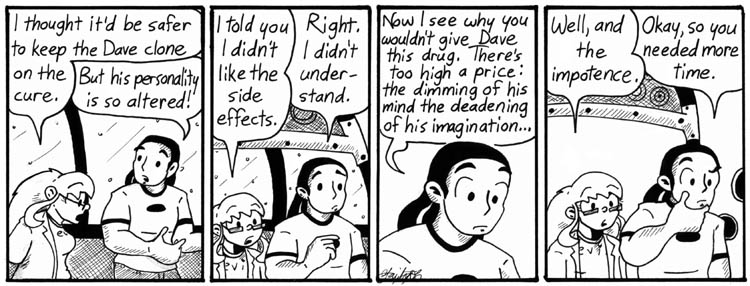 “The impotence thing is meant as a joke, but it’s listen on TV Tropes as Helen’s actual reason for not using the cure on Real Dave. I need to be careful about what I say in my comic strips.”