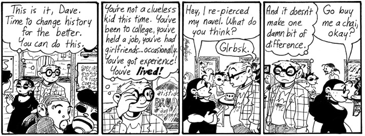 This strip is quite good at instilling a false sense of security in the reader, who at this point is wondering what Dave’s purpose or goal in this temporally detached misadventure is going to be.