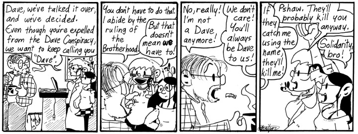 It suddenly occurs to me that Dave’s literal death and rebirth have provided more than their fair share of punchlines for subsequent strips, even a year in after the fact.