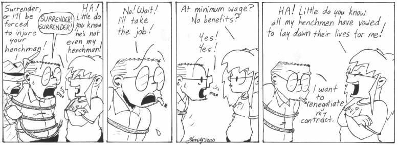 This one’s still pretty good. I always like it when everyone in the strip slavishly follows the unwritten rules of mad science and/or small business, and then someone (usually Helen) unfairly changes the rules around. A lot of comedy is based on following nonsensical social dictates. “Seinfeld,” for instance, or every British sitcom ever.