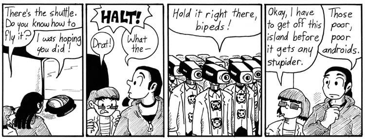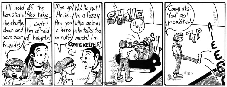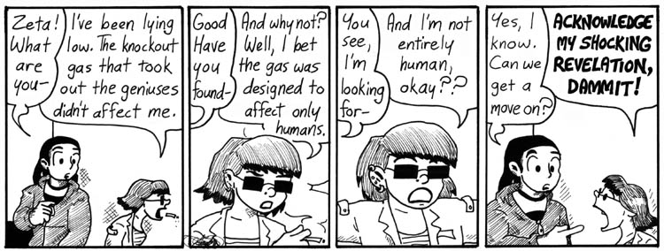 I like this strip a lot, but maybe that’s just a me thing. I find the Artie/Zeta relationship weirdly touching, all the more so because it’s never a big part of the plot in Narbonic and most happens in the background of other stories.