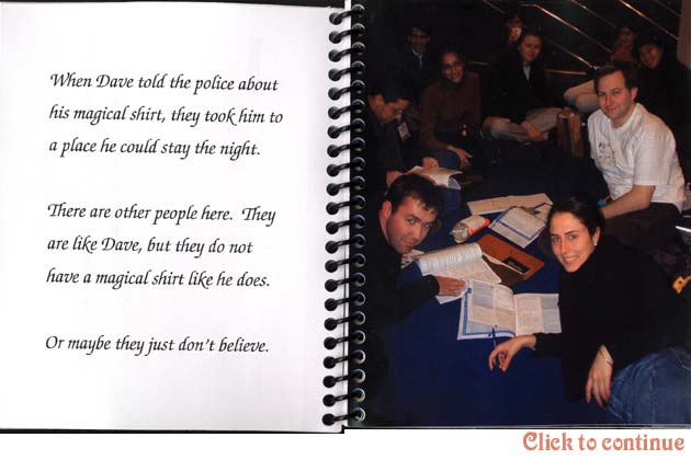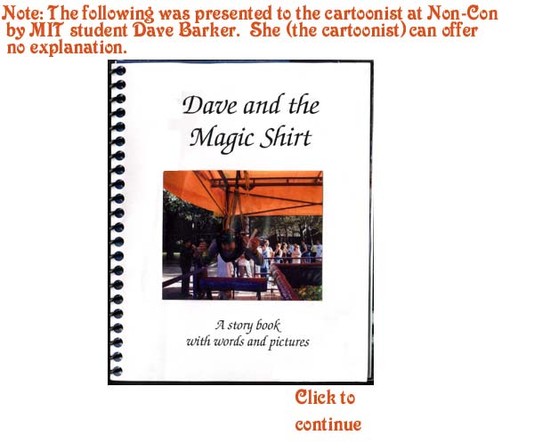 Right. So. This is an actual book, spiral-bound, with photos pasted into it. Dave Barker did indeed give it to me at Non-Con, the Vassar sci-fi convention, where I got to see a bunch of my Vassar friends (some of whom, to my immense dismay, I haven’t seen since). I was thrilled beyond words. I probably made weird, strained squealing noises. I don’t have a lot of personal dignity in situations like this.