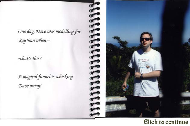 Sometimes I get the impression that Dave lives a much richer life than the rest of us. Like now, as I gaze at the image of him on a tropical island, surrounded by beautiful ladies in construction gear…and wearing his Narbonic T-shirt.