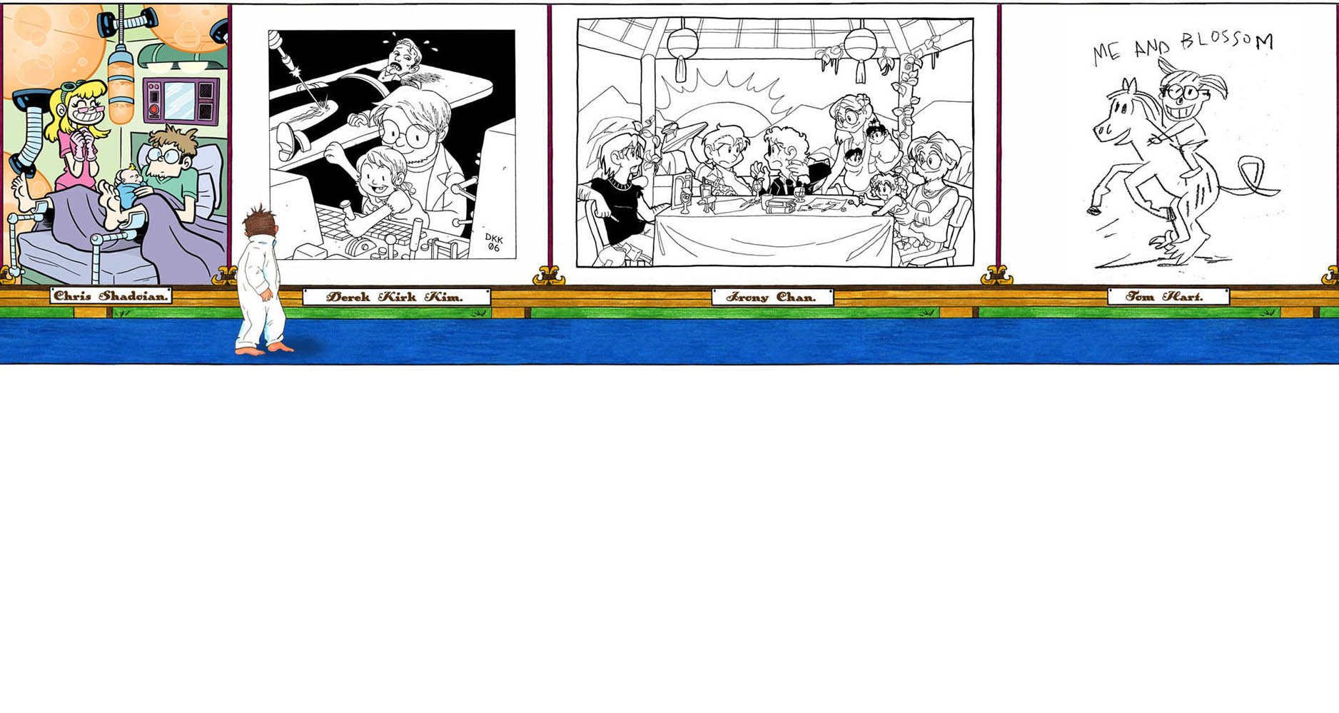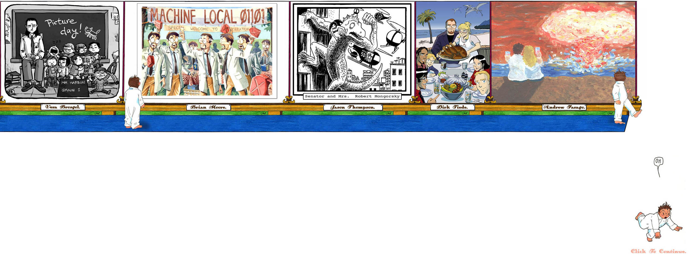I’ve updated the homepage links for the artists above. I should probably update their bios, too, but so much has changed. One of these people runs an art school now. Two of them make movies. Two draw smutty comics, and one draws Popeye. I should probably leave the bios as-is, so we can look back and marvel.