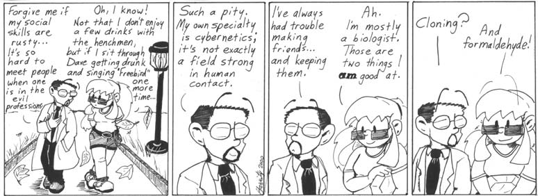 I’m not big on the floating eyebrows, especially the extra-dark ones Madblood has, but that smile Helen has when she says something silly is one of my favorite things about Narbonic. Well, that and almost everything else about the strip. 😉