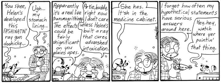 I think this is the only time Artie gets drunk in the strip. He holds his liquor a lot better than Dave does. In other news, that is one adorable detox gun.