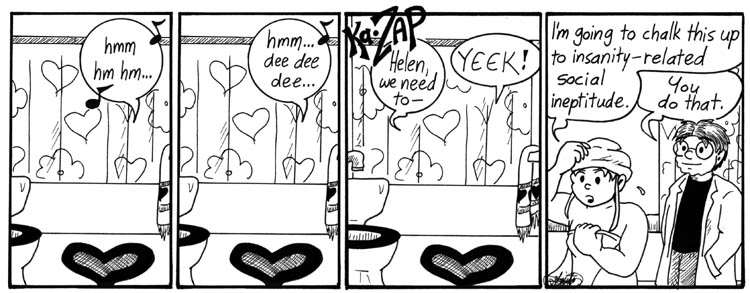 How good is this strip? It’s got Helen in a towel, and I only had to draw two panels. That’s my definition of an excellent strip.