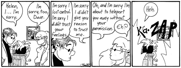 28. Ha!  I love this strip, it’s so cute.  Dave’s behavior is actually completely inappropriate; the fact that Helen doesn’t find a way to destroy him right there is proof that he at least has a chance.